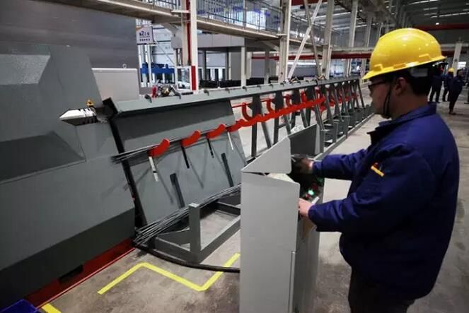 在基地生產(chǎn)現(xiàn)場看到,先進(jìn)的PC生產(chǎn)流水線、全自動(dòng)智能鋼筋加工線、智能混凝土攪拌站在緊張有序地工作著,焊接機(jī)器人、彎箍機(jī)器人、鋼筋柔性調(diào)直機(jī)器人等全自動(dòng)智能鋼筋加工設(shè)備舞動(dòng)著靈巧的長袖……目前,100余件電纜溝蓋板已經(jīng)生產(chǎn)并用于公司的基建中,不同數(shù)量的疊合板、陽臺板、樓梯、反打瓷磚墻板、剪力墻板、凸窗外墻板、堆場蓋板等預(yù)制構(gòu)件產(chǎn)品也于2016年年底達(dá)產(chǎn),2017年實(shí)現(xiàn)批量生產(chǎn)。