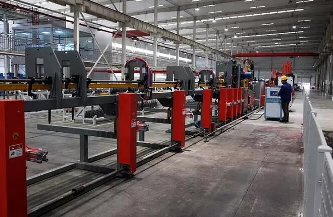 在項(xiàng)目建設(shè)初期,該公司引進(jìn)國內(nèi)先進(jìn)水平的PC生產(chǎn)流水線、全自動(dòng)智能鋼筋加工線并開發(fā)智能混凝土攪拌站。PC流水線由自動(dòng)清掃、噴油、劃線、邊模安裝、混凝土澆筑、趕平、預(yù)養(yǎng)護(hù)窯、抹光、養(yǎng)護(hù)、翻轉(zhuǎn)、沖洗等自動(dòng)化設(shè)備組成,整個(gè)流水線各操作平臺由中央控室統(tǒng)一調(diào)度、控制,實(shí)現(xiàn)智能化、自動(dòng)化生產(chǎn);鋼筋加工流水線是由全自動(dòng)智能鋼筋桁架焊接機(jī)器人、全自動(dòng)智能鋼筋彎箍機(jī)器人、全自動(dòng)智能鋼筋柔性調(diào)直機(jī)器人、棒材鋼筋加工中心等鋼筋加工設(shè)備組成,可實(shí)現(xiàn)圖形輸入,數(shù)控加工;公司使用的混凝土攪拌站,是由徐工施維英有限公司設(shè)計(jì)、制造的符合公司生產(chǎn)實(shí)際需要的行業(yè)先進(jìn)裝備,該設(shè)備擁有“一站式雙主機(jī)、立體料倉”的特點(diǎn),可生產(chǎn)多品種混凝土,尤其具有同時(shí)生產(chǎn)兩種型號混凝土的功能。