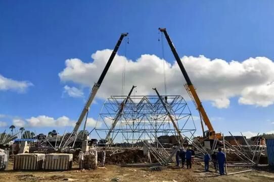 近日,4臺徐工QY25K5-I汽車起重機(jī)在印度尼西亞卡巴那島某項(xiàng)目的網(wǎng)架主體進(jìn)行了協(xié)同吊裝。