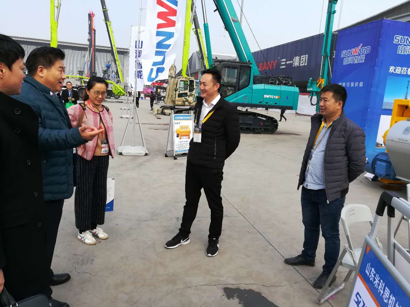 在2017長沙配博會(huì)上中國工程機(jī)械工業(yè)協(xié)會(huì)混凝土機(jī)械分會(huì)符忠軒會(huì)長及秘書長易君在砼商網(wǎng)劉娟女士的陪同下走訪參展會(huì)員單位。