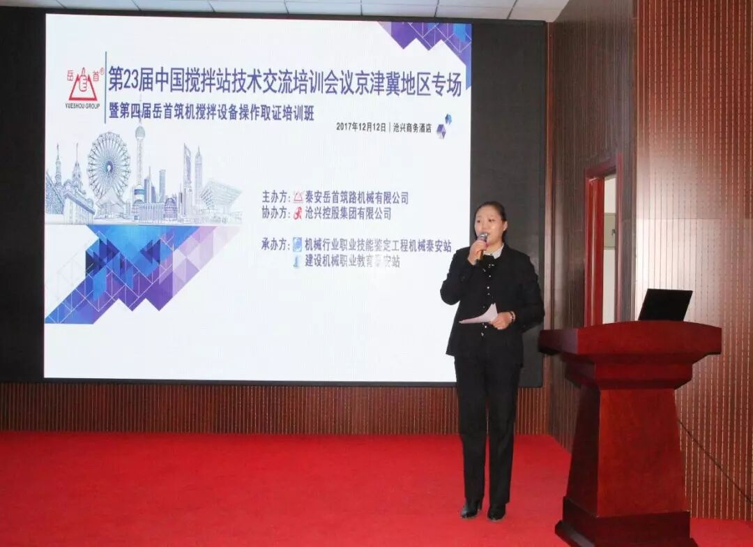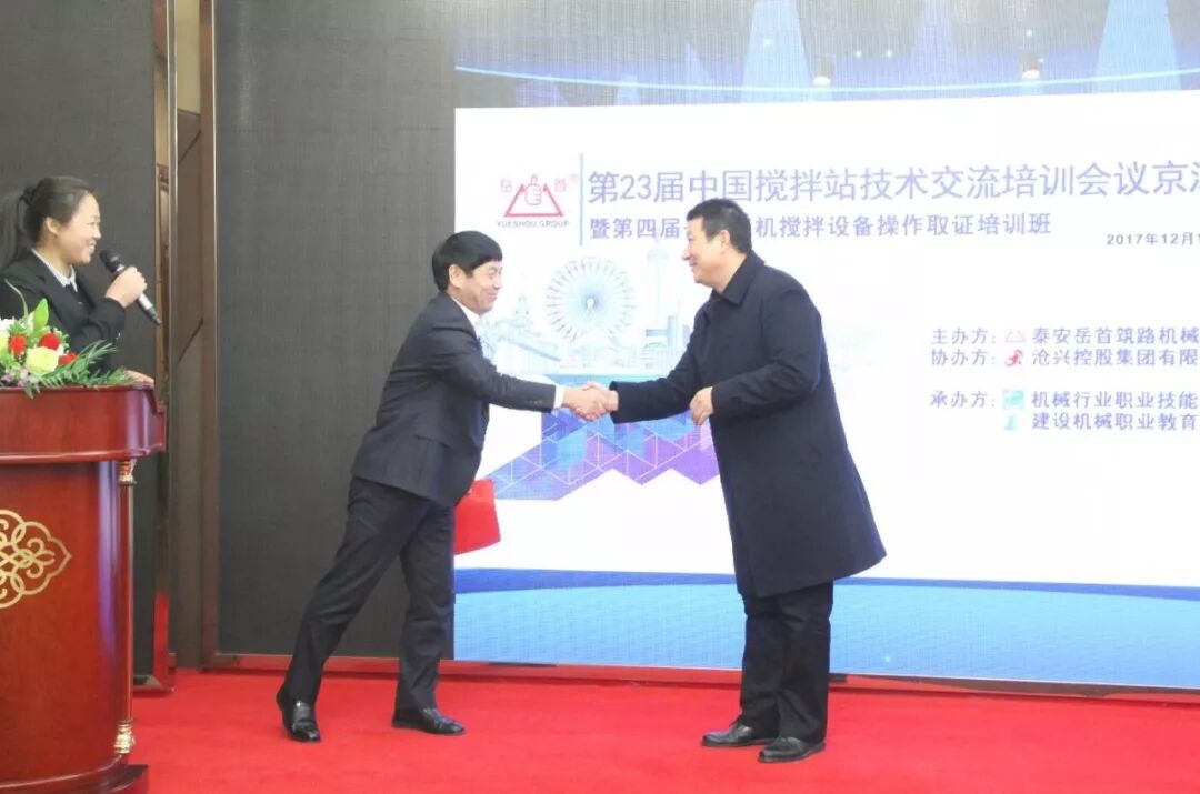 為進(jìn)一步提高攪拌設(shè)備從業(yè)人員的專業(yè)管理、操作技能水平;探討交流攪 拌站維護(hù)保養(yǎng)方式方法;使一線管理、操作人員具備能管理、懂原理、懂構(gòu)造、懂用途、懂性能,會(huì)操作、會(huì)維護(hù)、會(huì)排除故障的專業(yè)技能;更好 地服務(wù)于設(shè)備使用單位。泰安岳首筑路機(jī)械有限公司聯(lián)合機(jī)械行業(yè)職業(yè)技 能鑒定工程機(jī)械泰安站、建設(shè)機(jī)械職業(yè)教育泰安站于2017 年12 月11-12 日在河北省滄州市舉辦了“第23屆中國攪拌站技術(shù)(設(shè)備)交流培訓(xùn)會(huì)議 京津冀地區(qū)專場暨第四屆岳首筑機(jī)攪拌設(shè)備管理操作培訓(xùn)班”,滄興控股集團(tuán)有限公司協(xié)辦了本次會(huì)議。