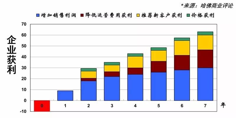 流失一位客戶并不是像把設(shè)備賣給一位客戶那樣做加減運(yùn)算,很多情況下,留住一位客戶并不是加1,而是加10,他們會帶來重復(fù)購買、錢包份額、口碑相傳、客戶推薦……