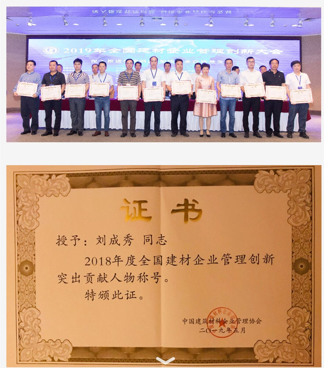 為深入學(xué)習(xí)貫徹習(xí)近平新時(shí)代中國(guó)特色社會(huì)主義思想和 黨的十九大精神,落實(shí)《中共中央、國(guó)務(wù)院關(guān)于營(yíng)造企業(yè)家健康成長(zhǎng)環(huán)境弘揚(yáng)優(yōu)秀企業(yè)家精神更好發(fā)揮企業(yè)家作用的意見》 (中發(fā)〔2017〕25 號(hào)),深入實(shí)施工業(yè)和信息化部等 11 部委 聯(lián)合下發(fā)的《關(guān)于引導(dǎo)企業(yè)創(chuàng)新管理提質(zhì)增效的指導(dǎo)意見》(工信部聯(lián)產(chǎn)業(yè)〔2016〕245 號(hào)),進(jìn)一步推動(dòng)建材企業(yè)高質(zhì)量發(fā)展,促進(jìn)企業(yè)轉(zhuǎn)型升級(jí)和提質(zhì)增效,中國(guó)建筑材料企業(yè)管理協(xié)會(huì)于 2018 年 12 月~2019 年 4 月開展了“2018 年度全國(guó)建材 企業(yè)管理現(xiàn)代化創(chuàng)新成果和管理創(chuàng)新突出貢獻(xiàn)人物”審定活動(dòng),歷時(shí)五個(gè)月,經(jīng)初審、終審,評(píng)選出百位全國(guó)建材行業(yè)優(yōu)秀企業(yè)家,其中中國(guó)工程機(jī)械協(xié)會(huì)混凝土機(jī)械分會(huì)成員—— 成都金瑞建工機(jī)械有限公司劉成秀董事長(zhǎng)獲得“2018 年度全國(guó)建材企業(yè)管理創(chuàng)新突出貢獻(xiàn)人物”稱號(hào)!