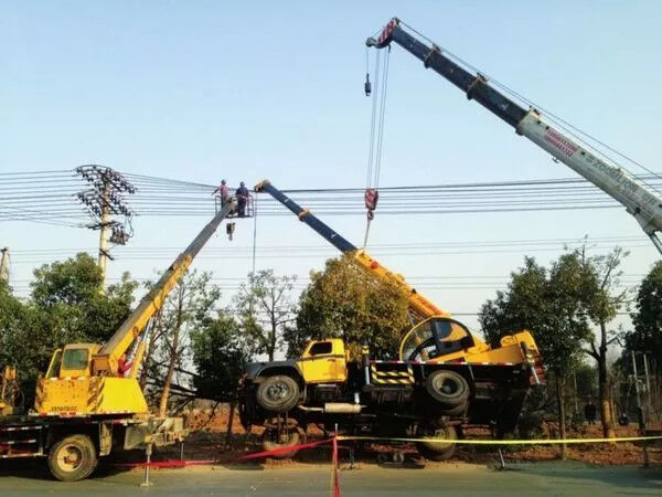 作業(yè)時(shí)須設(shè)專人監(jiān)護(hù),調(diào)動(dòng)時(shí),應(yīng)執(zhí)行“機(jī)調(diào)人隨”,尤其吊車作業(yè)前需提前聯(lián)系電力部門人員(鐵塔命名牌上一般都有聯(lián)系電話)現(xiàn)場(chǎng)校核,滿足作業(yè)條件方可開(kāi)工。