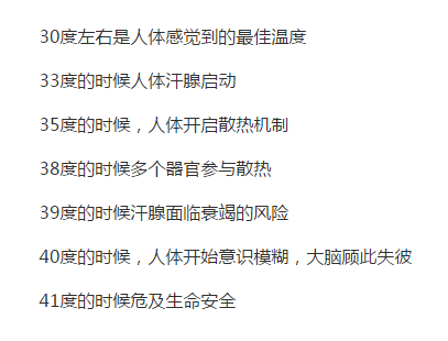 ②全身性高溫反應(yīng):人在高溫環(huán)境中停留時(shí)間較長(zhǎng),體溫會(huì)漸漸升高,當(dāng)局部體溫高達(dá)38℃,便會(huì)產(chǎn)生不舒適反應(yīng)。人的深部體溫通常以肛溫為代表。人在休息時(shí)主訴可耐受的肛溫38.4~38.6℃,在體力勞動(dòng)時(shí)為38.5~38.8℃。高溫極端不舒適反應(yīng)的肛溫臨界值為39.1~39.4℃。肛溫超過(guò)這一限度,汗率和皮膚熱傳導(dǎo)量都不再上升,表明人體對(duì)高溫的適應(yīng)能力已達(dá)到極限。如果溫度再繼續(xù)升高,即會(huì)出現(xiàn)生理危象。全身性高溫的主要癥狀為:頭暈、頭痛、胸悶、心悸、視覺(jué)障礙(眼花)、惡心、嘔吐、癲癇樣抽搐等。溫度過(guò)高還會(huì)引起虛脫、肢體強(qiáng)直、大小便失禁、暈厥、燒傷、昏迷,直至死亡。