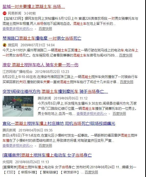 每年混凝土攪拌車發(fā)生碰撞的事并非少數(shù),小編在百度上一搜索,心中一痛。發(fā)生這種事,對混凝土攪拌站、司機、受害人都是有影響的。輕則罰款、名義受損,重則當場丟失性命。