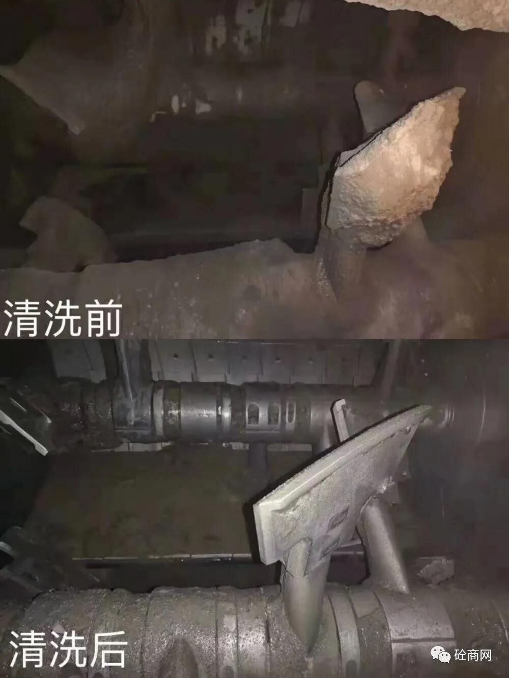 攪拌主機因為每天要反反復復不停的生產(chǎn),就會在大軸及葉片或周邊堆積大量的混凝土結塊,時間長了,就會出現(xiàn)抱軸現(xiàn)象,而抱軸現(xiàn)象一出現(xiàn),就由輔助工進主機進行清理,由于用風鎬這類電動工具清理,在大軸或葉片上就會留下很多的坑坑洼洼,導致抱軸現(xiàn)象會越來越頻繁,越來越嚴重!