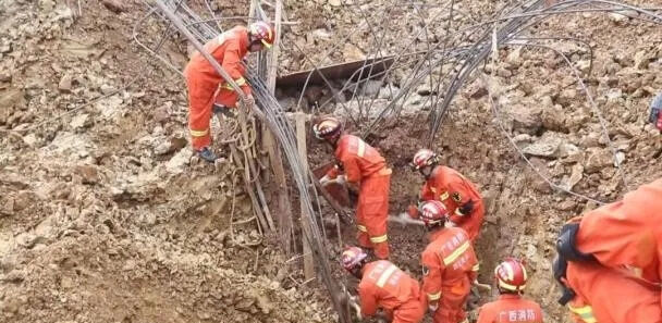 救援正在爭分奪秒進(jìn)行時(shí),13點(diǎn)56分,基坑突然發(fā)生二次塌方,原有救援通道被封堵,人員被埋位置更深,現(xiàn)場情況變得更加嚴(yán)峻復(fù)雜,救援難度進(jìn)一步增大。百色市應(yīng)急管理局、公安局、百色市紅十字會(huì)搜救救援隊(duì)、供電局等社會(huì)聯(lián)動(dòng)單位相繼到達(dá)現(xiàn)場,并成立現(xiàn)場指揮部。