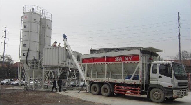 6.1場(chǎng)地大小。A8砂漿生產(chǎn)線(xiàn)固定的主體部分占地約15m×25m,前文分析的生產(chǎn)中連續(xù)不斷的需要運(yùn)砂車(chē)、散裝水泥車(chē)、粉煤灰和礦粉的運(yùn)輸車(chē)以及10臺(tái)砂漿罐車(chē)的來(lái)回周轉(zhuǎn),停車(chē)接、卸料,其需要的停車(chē)位、回轉(zhuǎn)空間是設(shè)備占地面積的幾十倍,而這么大的場(chǎng)地幾乎是沒(méi)有哪個(gè)建筑工地能提供的。就算某些個(gè)別工地確實(shí)有這么大場(chǎng)地,承建方是否會(huì)允許砂漿供應(yīng)商免費(fèi)使用?