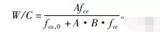 其中,A,B均為回歸系數(shù)?;貧w系數(shù)A和B應根據(jù)工程所使用的水泥、骨料和通過試驗建立水灰比與混凝土強度關(guān)系式確定,當不具備上述試驗資料時,對碎石混凝土A可取0.48,B可取0.52,對卵石混凝土A可取0.50,B可取0.61;fce為水泥的實際強度,MPa;fcu,0為混凝土施工的配制強度,MPa。