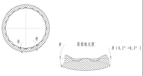 在內(nèi)孔加工過程中,油穴與內(nèi)壁交接處自然形成0.10~0.30的楔形角,不僅提高了布油效率,而且兩排油穴之間的部分形成類似滾珠的弧形面,使軸套內(nèi)壁具有了滾動軸承的特點。