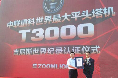 在交付儀式現(xiàn)場,英國吉尼斯世界紀錄認證官陳東先生鄭重宣布,T3000是全球最大的平頭塔機,由中國的中聯(lián)重科制造,再次創(chuàng)造了全球起重機械的又一個“世界之最”。“該項記錄的誕生標志著中聯(lián)重科塔機技術(shù)站在了世界塔機設計和制造領(lǐng)域的最前沿,充分彰顯了中聯(lián)重科在全球起重機行業(yè)的領(lǐng)先地位和主導作用”,國家建筑城建機械質(zhì)量監(jiān)督檢驗中心主任曾舜安表示。