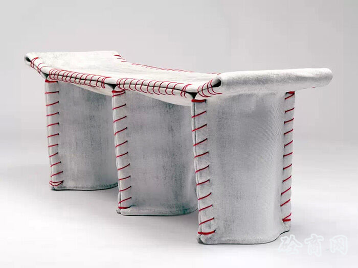 德國設(shè)計(jì)師florian schmid設(shè)計(jì)了一種“縫合混凝土”座椅,這個設(shè)計(jì)受到了混凝土帆布(CC)材料的影響?;炷敛剂鲜且环N浸漬了布料的柔軟水泥,它在水合過程中變硬,最終形成一個輕薄的,防水防火的混凝土表皮,將柔軟溫暖的布料質(zhì)感和堅(jiān)硬冰冷的水泥融為一體。