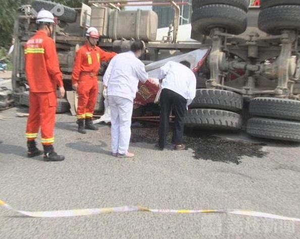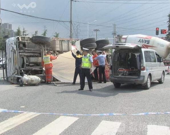 事故發(fā)生之后,南京交警十大隊民警迅速趕到現(xiàn)場,設置路障、保護現(xiàn)場,呼叫救護車過來救助傷者。荔枝新聞通訊員在現(xiàn)場看到,一輛大型水泥攪拌車側翻在紅綠燈路口中間,車頭頂著一輛踏板電瓶車,騎車的男子被攪拌車壓在底下,已經(jīng)死亡。肇事的水泥攪拌車駕駛員也投案自首。