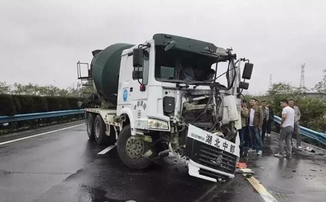 沒想到,隨后而來的一輛水泥攪拌車,經(jīng)過事發(fā)路段,也因?yàn)榈缆窛窕暰€不佳,來不及避讓事故車輛,駕駛員猛打方向,直接撞上了邊護(hù)欄,巨大的沖擊力讓水泥攪拌車直接來了個(gè)近180度的大轉(zhuǎn)彎,逆向停在了兩條行車道之間,車輛前臉和駕駛室受損嚴(yán)重,所幸駕駛員只是受了輕傷。由于事故車輛將兩條行車道全部占據(jù),一時(shí)間二廣高速車輛出現(xiàn)滯留。