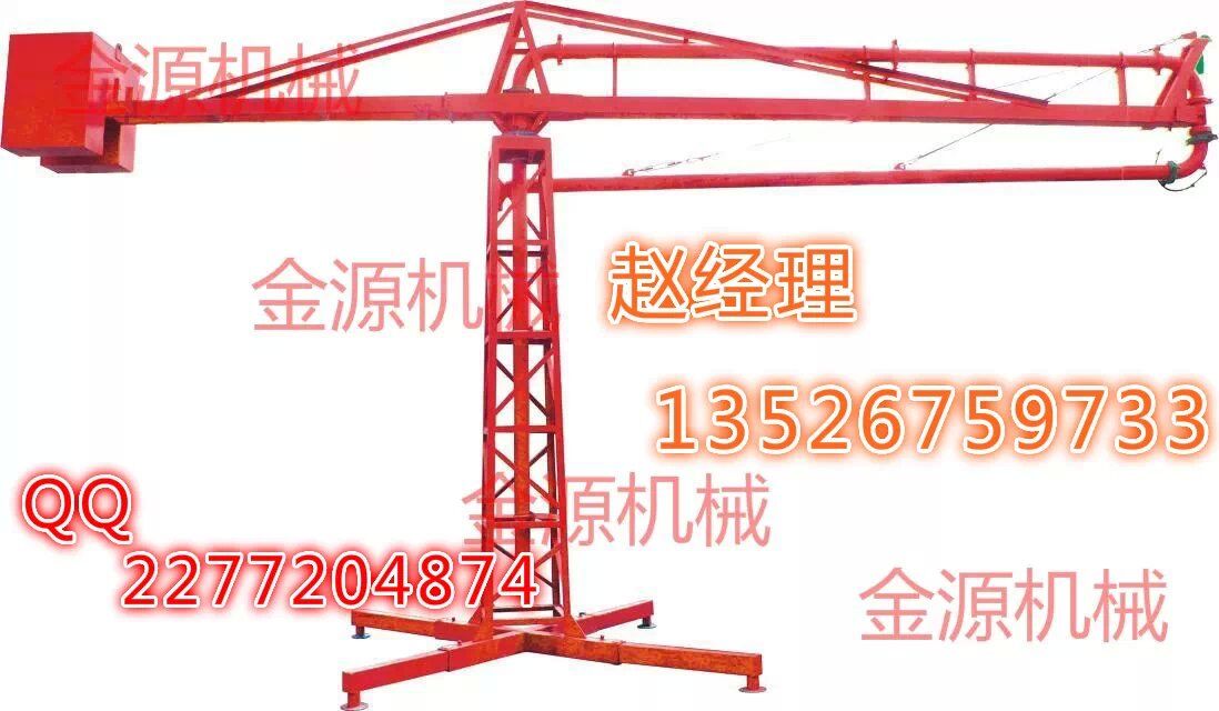 結(jié)構(gòu):、插銷、立架、構(gòu)成的底座是固定部分,其上通過回轉(zhuǎn)支承與上部回轉(zhuǎn)部分相連,上主梁架、平衡臂、平衡臂架拉桿、上橫桿組成后回轉(zhuǎn)部分。立管上有回轉(zhuǎn)卡篐接頭。通過人力拉動,可使整個回轉(zhuǎn)部分回轉(zhuǎn)360度。上梁主架前端連接有一個回轉(zhuǎn)支座與前橫桿、前拉桿組成前回轉(zhuǎn)部分,在人力拉動下可繞回轉(zhuǎn)支座旋轉(zhuǎn)300度。由兩部分回轉(zhuǎn)架組成的合成運動就能覆蓋所有布料半徑范圍的布料點。