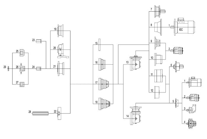 —輸入型式:高速輸入軸,電動,液壓馬達(dá)的接盤;多碟制動器等。