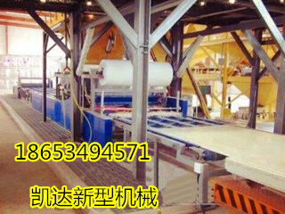勻質(zhì)板設(shè)備產(chǎn)品在連續(xù)生產(chǎn)線連續(xù)同步完成發(fā)泡、固化、覆膜過程。面層軋壓設(shè)備用于將面層材料軋壓成設(shè)計所需要的花紋或圖形;反應(yīng)灌注機(jī)用于a料、b料按工藝要求的比例計量混合;移動澆注機(jī)用于將混合的ab料及泡沫以往復(fù)移動的方式覆蓋在下層面材上;層壓機(jī)上下各一臺,用于原料在上下層移動鏈板間固化、定型;熱風(fēng)循環(huán)裝置用于層壓機(jī)內(nèi)部的加溫;貼側(cè)邊紙和側(cè)邊輸送機(jī)用于板材測邊擋料,修邊機(jī)用于改性eps防火保溫板板兩側(cè)修邊;自動跟蹤機(jī)用于將板材切斷成定長;生產(chǎn)方式為連續(xù)不間斷,生產(chǎn)效率高,產(chǎn)品質(zhì)量穩(wěn)定,板材密度均一。