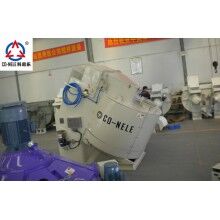 CQM系列高效強(qiáng)力混合機(jī)在強(qiáng)力混合機(jī)的料盤中,偏心安裝攪拌星與高速轉(zhuǎn)子。料盤以低速順時(shí)針方向旋轉(zhuǎn),連續(xù)不斷地將物料送入中速逆時(shí)針轉(zhuǎn)動的攪拌星的運(yùn)轉(zhuǎn)軌跡內(nèi),借助料盤旋轉(zhuǎn)及刮料板的作用,將物料翻轉(zhuǎn)送入高速逆時(shí)針旋轉(zhuǎn)的高速轉(zhuǎn)子運(yùn)行的軌跡內(nèi)進(jìn)行混料。在連續(xù)的、逆流相對運(yùn)動的高強(qiáng)度混練過程中,物料能夠在很短的時(shí)間內(nèi)混合均勻一致,
