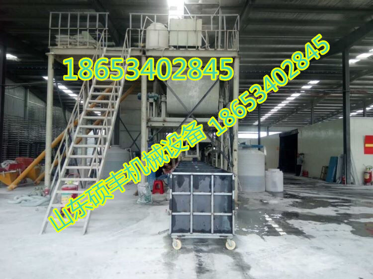 水泥基勻質板設備產品先將減水劑加入水(水溫40℃左右)中,攪拌均勻約20秒,再加粉煤灰、水泥攪拌1分鐘,加樹脂膠攪拌一分鐘,加纖維、憎水粉、固化劑攪拌30秒(根據固化速度調整時間),入加引氣劑攪拌20秒后充入聚苯顆粒(氣泵打入泥漿底部)攪拌5-10秒鐘后(泡沫顆粒均勻) 裹漿)將料漿倒入模子中刮平。
