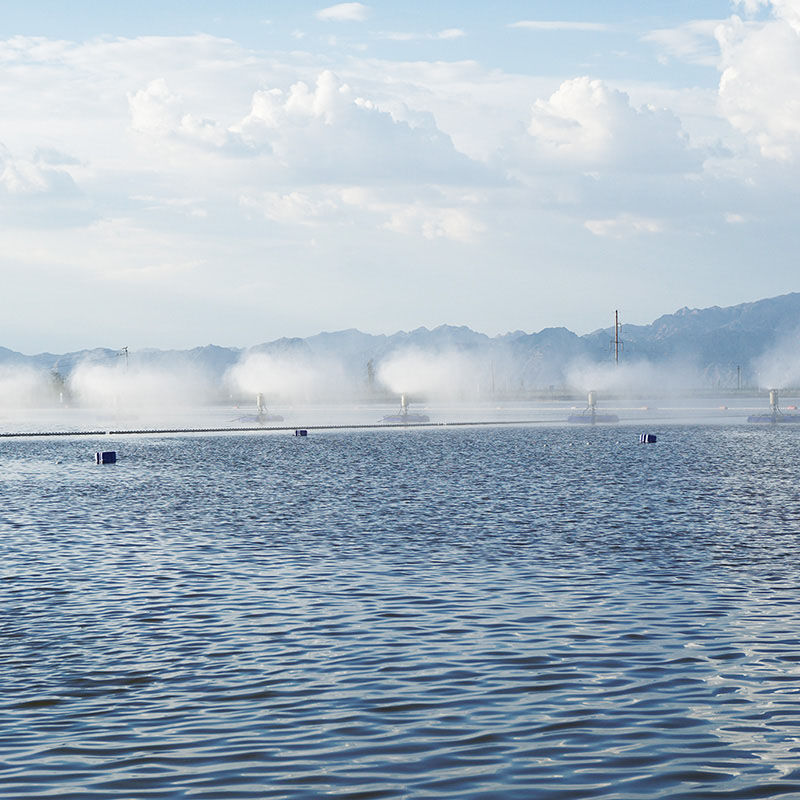 并且占地面積小、投資成本低。還有一種是風(fēng)送式蒸發(fā)器、風(fēng)送式蒸發(fā)器是把蒸發(fā)設(shè)備架在岸邊、利用高速旋轉(zhuǎn)的風(fēng)機把水破碎噴灑在天空中進(jìn)行蒸發(fā),這種和漂浮式蒸發(fā)器效果類似
