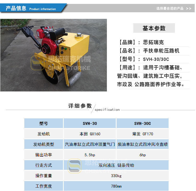 歸屬行業(yè):山東思拓瑞克SVH30 小型手扶式單鋼輪壓路機