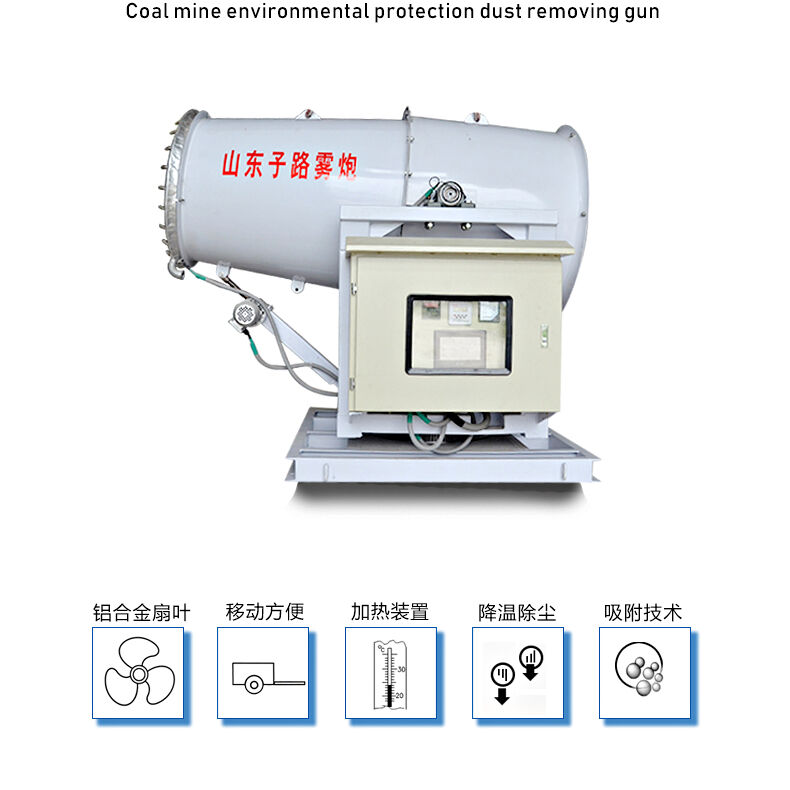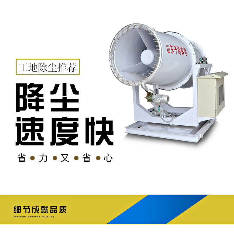 子路環(huán)??萍加邢薰疽豢钔ㄟ^高壓風機將儲存的水壓縮成灰塵大小,在利用不銹鋼噴嘴部位將水霧化吹向高空凈化空氣的一種新型環(huán)保除塵產品。這款產品名字叫高射程霧炮機,