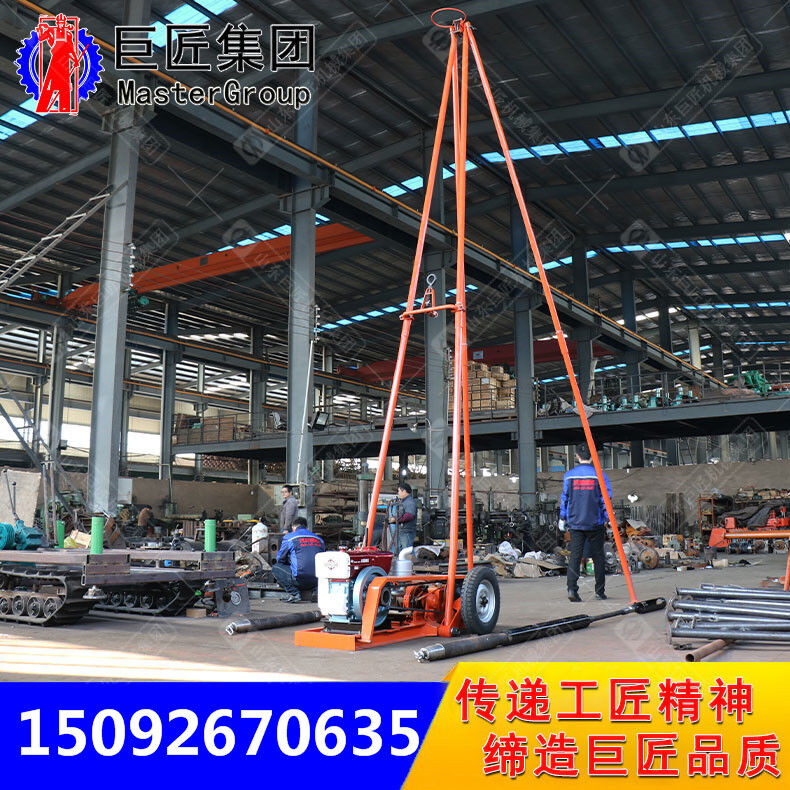 操作簡單而且機械化程度高,在正常情況下只需定員三人。 重量輕、結(jié)構(gòu)緊湊、解體性能好、搬運方便,在山區(qū)可拆搬,因配備有一對膠輪,故在城市和其它道路平坦地區(qū)可用汽車拖帶來實現(xiàn)施工孔位的移動。