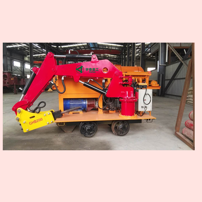 湖南宇泰重工生產(chǎn)的大石破碎機(jī)是集成行走滾輪、動(dòng)力裝置、控制柜、機(jī)械臂和液壓破碎錘的機(jī)、電、液三合一的機(jī)械設(shè)備,主要應(yīng)用于礦山井下大石的破碎。該機(jī)能處理邊長1000毫米以下物料,其抗壓強(qiáng)度最高可達(dá)160兆帕。具有破碎比大,破碎后物料呈立方體顆粒等優(yōu)點(diǎn)。