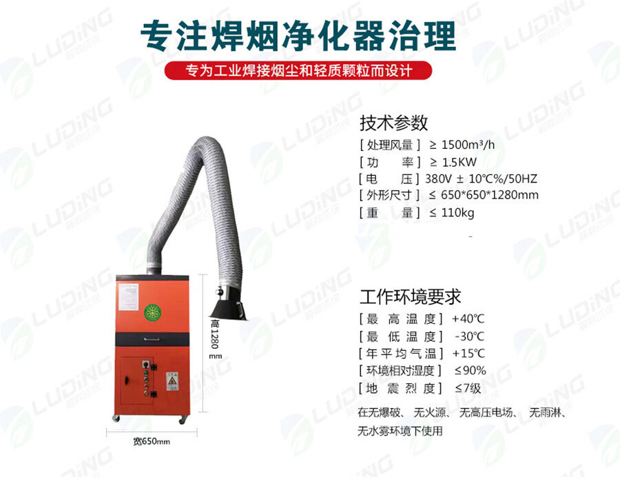 焊接煙塵又稱為電焊煙霧,是指焊接操作中經(jīng)常會產(chǎn)生一些有毒的物質(zhì)。如:乙醛、松香酸、異氰酸鹽、氮氧化物、硫化物、碳?xì)浠衔锏取:附訜焿m是一種十分復(fù)雜的物質(zhì),lans已在煙塵中發(fā)現(xiàn)的元素多達(dá)20種以上,其中含量多的是FeCa、Na等,其次是Si、AlMn、Ti、Cu等。焊接煙塵中的主要有害物質(zhì)為Fe2O3SiO2、MaoHF等,其中含量多的為Fe2O3,一般占煙塵總量的35.56 ,其次是SiO2,其含量占1020 ,Mao520 左右。