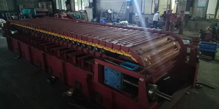 5、檢查上、下托輥、鏈板等的磨損、斷裂情況,如有問題應(yīng)及時處理、更換。
