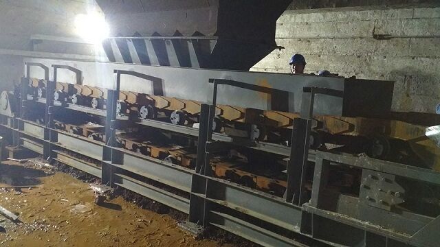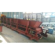3)第三種方法是將刮板輸送機(jī)固定在板式給料機(jī)下面的水泥基礎(chǔ)溝槽內(nèi),漏料通過(guò)漏斗進(jìn)入刮板輸送機(jī)內(nèi)。