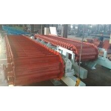 通過此次改造,與改造前相比設(shè)備部件損壞后更換更為方便。改造前更換部分鏈條較為困難,改造后輸送鏈條采用銷軸加穿銷的方式,便于拆解,可實(shí)現(xiàn)單節(jié)更換。行走輪單獨(dú)設(shè)置,不與頭輪接觸,不承載牽引力,其安裝于固定座,由螺桿固定,可實(shí)現(xiàn)單獨(dú)更換。在槽板中間部位安裝支重輪,承受部分物料倉物料重量,可提高槽板使用壽命。本次改造主要部件未進(jìn)行更換,改造費(fèi)用相對(duì)較少,改造取得較好效果。