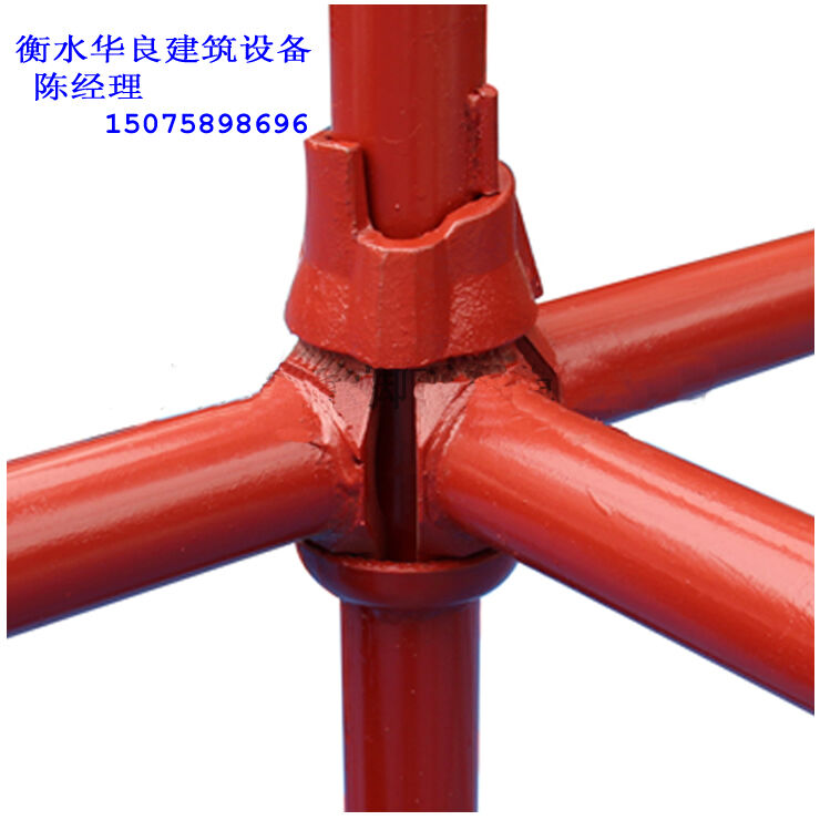 碗扣腳手架獨特的結點設計,雖仍應歸為鉸接,但卻能夠承受相對更大的荷載,再加上其立桿上的上碗和橫桿上的插片均為鍛鋼的工藝,使這款碗扣腳手架系統(tǒng),在國外被廣泛地應用于化工廠、煉油廠、油田以及大型船艦維修等荷載相對較高的領域。考慮到系統(tǒng)的穩(wěn)定性,安裝斜桿是必須的。為了補足這個弱項,該系統(tǒng)特意設計了另外一類斜桿,在斜桿的兩頭,均用高強度螺栓,各固定半個旋轉扣件,扣件亦采用鍛鋼工藝。這樣,盡管斜桿無法直接在碗扣的結點扣接,但可以用扣件扣接在橫桿或立桿的適當位置上,也大大地改善了系統(tǒng)的穩(wěn)定性。