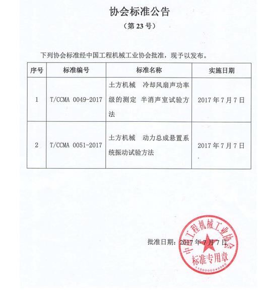 中國工程機(jī)械工業(yè)協(xié)會(huì)標(biāo)準(zhǔn)公告(第23號(hào))