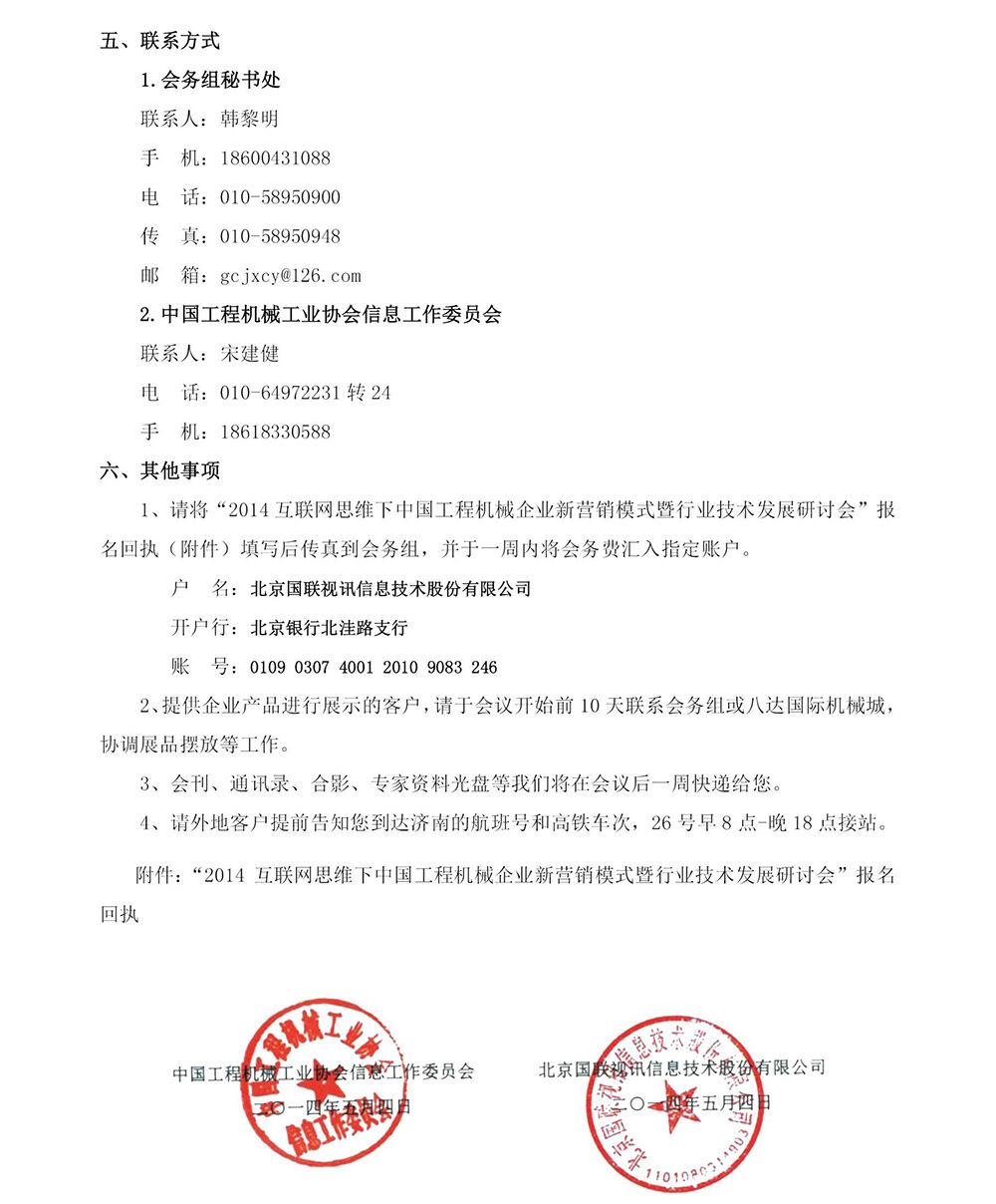 關(guān)于召開“2014互聯(lián)網(wǎng)思維下中國工程機(jī)械企業(yè)新營銷模式暨行業(yè)技術(shù)發(fā)展研討會(huì)”的通知