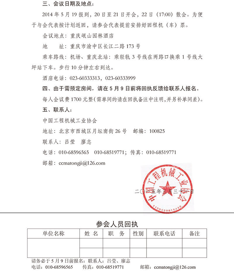 關(guān)于召開(kāi)中國(guó)工程機(jī)械工業(yè)協(xié)會(huì)2015年度統(tǒng)計(jì)信息工作會(huì)的通知